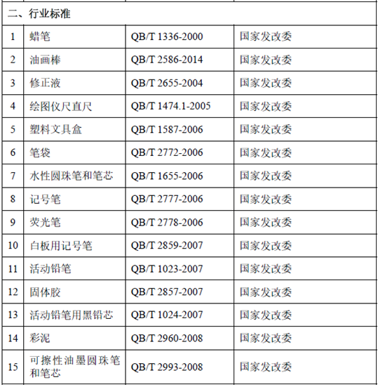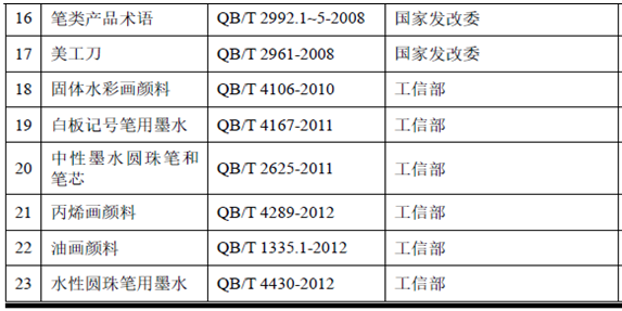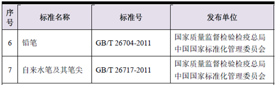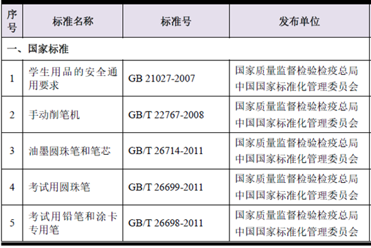 为有效控制文具行业的整体产品品质,国家制定并发布了一系列有关该行业的标准要求,具体如下: