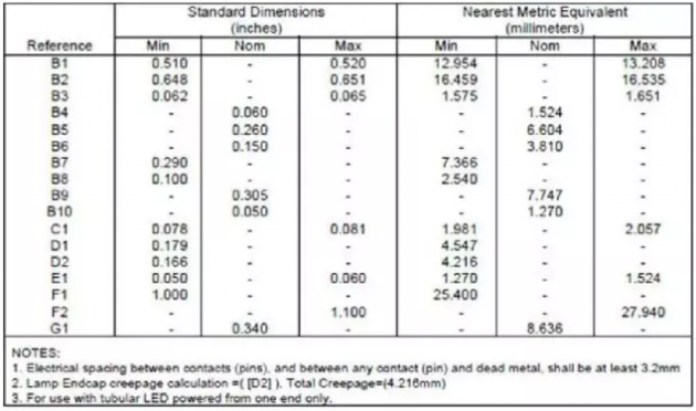 产品必须是48英寸长并使用G13灯头,任何制造商材料都必须声明替换的是T8同长度的荧光灯管。DLC不允许制造商宣称替换其他长度或直径的荧光灯管,比如一个T8的LED灯管替换T12荧光灯管,是不被允许的。