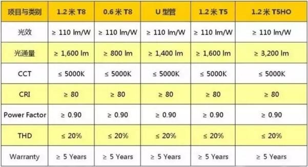 下表是4.2版本更新后所有灯管裸管的要求: