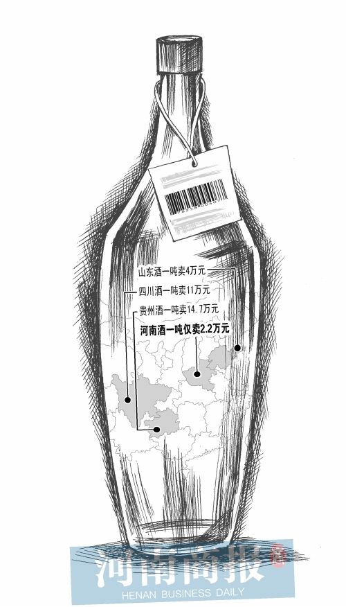 山东酒一吨卖4万元,四川酒一吨卖11万元,贵州酒一吨卖14.7万元,但河南酒一吨仅卖2.2万元,与河南白酒生产大省的地位极不相配。