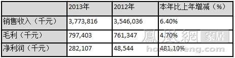 3月26日,雷士照明发布2013年年报。年报显示,雷士照明控股有限公司2013年取得销售收入约37.74亿元,毛利约7.97亿元,相较于2013年,分别增长6.4%及4.7%,而净利润则上涨481.1%至2.82亿元,主要得益于管理费用和其他费用的大幅下降。