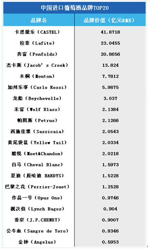进口葡萄酒品牌TOP20出炉,拉菲、卡思黛乐名列前茅