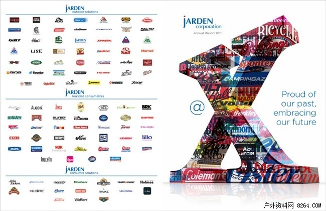 Jarden旗下品牌超过100个,分为Consumer Solutions、Ootdoor Solutions及Process Solutions三个事业部,主要经营日常生活用品、户外产品和工业产品,产品在100多个国家和地区销售。目前Jarden旗下户外事业部包括Abu Garcia、AeroBed、Berkley、 Campingaz、Coleman、EXOFFICIO、Fenwick、Greys、Gulp!、Hardy、Invicta、K2、 Madshus、Marker、Marmot、Mitchell、PENN、Rawlings、Ride、Sevylor、 Shakespeare、Stearns、Stren、Trilene、Volkl、Worth 及Zoot总共27个户外品牌,产品线覆盖棒球及周边产品、户外运动服、睡袋、滑雪板、渔具和帐篷等,户外事业部一直是Jarden保持稳定增长的业务部分。