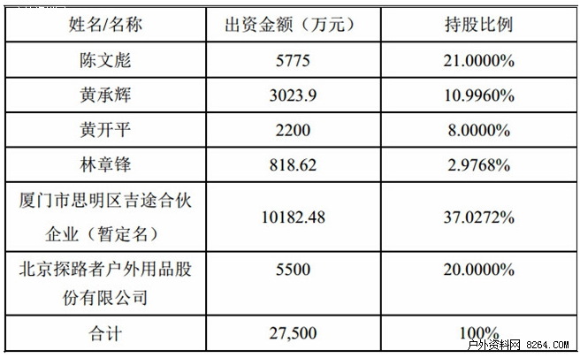 经历次股权变更,截至 2014 年 12 月 24 日,图途的注册资本为人民币 2,230万元,探路者向图途增资全部完成后,其注册资本将变更为人民币 27,500 万元,具体持股情况如下: