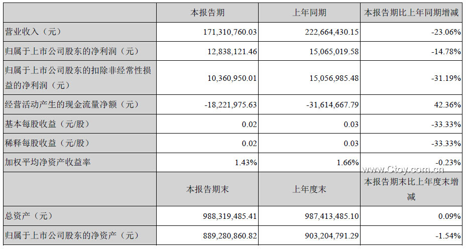 靠制造玩具发家的群兴玩具,过分依赖主营玩具业务显然已面临瓶颈。如何转型,群兴玩具面临不少难题。今天(8月18日),广东群兴玩具股份有限公司(群兴玩具)发布2015年半年度报告,受国内销售收入下降影响,报告期内,公司实现营业收入17,131.08万元,同比减少23.06%;实现利润总额1,564.06万元,同比减少10.11%,实现净利润1,283.81万元,同比减少14.78%。
