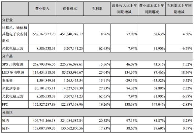 公司表示,惠州工厂的产能和效率逐步提升,LED业务明显好转,新增合并方正达电路板业务,营业收入总额相比去年同期有较大增长。