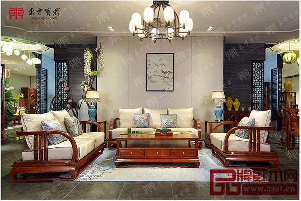 东方宝鼎红木岳阳旗舰店内的时尚典雅的新中式红木家具