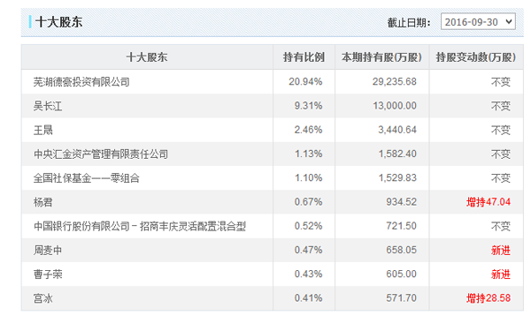 ▲ 德豪润达前十大股东概况(截止2016.09.30)