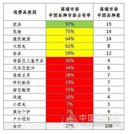 据图一中数据显示,家具的中国品牌市场占有率95%,位列第一,并与第二名的“食品”拉开很大的一段差距,可见,家居行业的市场前景开阔,以及家居企业的品牌意识是相对强烈的。而“中国品牌日”设立后,各家居企业又有何大动作,如何布局市场争取更多份额?我们拭目以待。