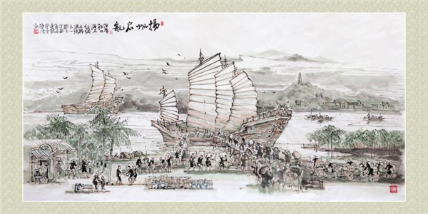 梅州松口港边,帆樯林立,工人肩上扛着重物成列行走;画面近处,屋舍、树木细节清晰可见。这幅生动的《扬帆起航》载体并非画纸,而是瓷砖。而这件瓷艺产品,便出自蒙娜丽莎集团股份有限公司(以下简称“蒙娜丽莎”)之手。
