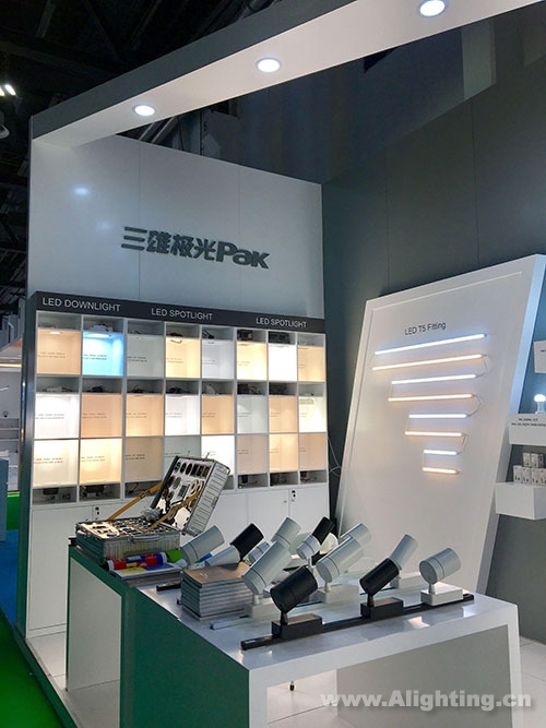 除了球泡灯、直管、筒射灯、草坪灯等畅销产品悉数展出,我们在三雄极光展位上看到其新近上市的高端酒店产品——铂刻系列。据悉,这是铂刻系列在海外首次亮相,这也标志着愈发成熟的铂刻系列在走向世界化的道路上迈出了坚定的一步。