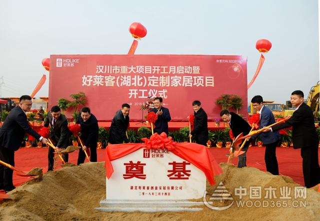 3月14日, “湖北好莱客创意家居有限公司汉川项目奠基仪式”在好莱客(湖北)定制家居工业 项目建设现场隆重举行。孝感市委书记潘启胜及汉川市领导李先乔、黄建军等全体“四大家”领导出席奠基仪式,好莱客董事长沈汉标携好莱客高管、经销商代表、供应商代表及各界媒体朋友出席了此次奠基仪式。至此,好莱客(湖北)定制家居工业4.0制造基地正式动工。
