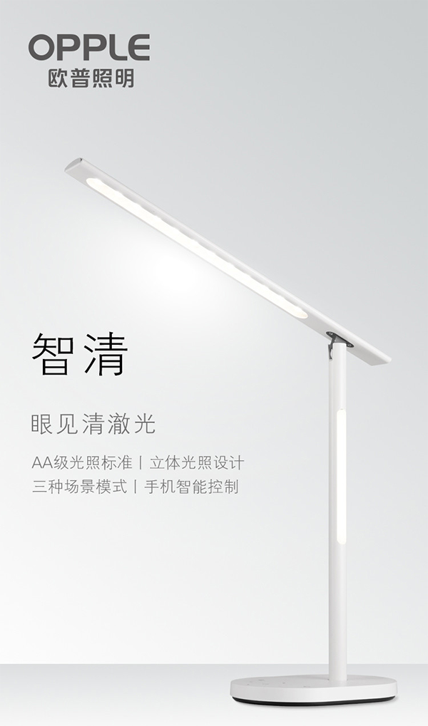 除了这盏灯本身, 值得一提的是欧普长期以来专注对健康光进行深入研究,致力于为不同年龄、不同人群打造健康光环境。今年上半年,欧普针对儿童推出了智能儿童读写台灯,贴心地为低龄儿童加载了坐姿提醒功能,在光学上不仅频闪测试达到免考核级别,更达到AA级照度标准,成为首个被国家光电源中心评定为最高级别五星级的台灯。现在又推出智清智能台灯,面向学生和上班族等更广泛人群,保持AA级的顶级照度标准的同时增加了贴心的背光设计,预设场景模式。欧普作为行业的领先企业,在持续给消费者带来健康光环境体验的同时,也借和消费者接触更频繁的台灯品类树立了读写台灯品类上的新标杆,启发行业携手共进,为消费者带来更美好的生活品质。
