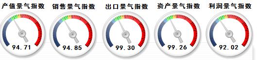 从分指标运行指数来看,2012年7月中轻产值景气指数94.71(上月 96.47)、销售景气指数为94.85(上月 95.22)、出口景气指数99.30(上月 101.10)、资产景气指数99.26(上月 100.03)、利润景气指数92.02(上月 92.04)。与上月相比,分指标景气指数均呈现进一步下降趋势。