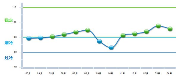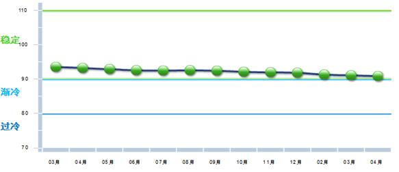 造纸行业景气度有所回暖,在3月向上突破至稳定区间后,本月继续保持在稳定区间运行,景气指数90.94。
