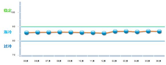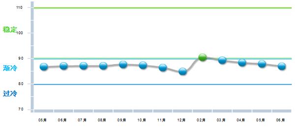 中国轻工业经济运行及预测预警系统数据显示:2016年6月份中轻景气指数为88.52,较5月份略降0.38个点,仍处于蓝色渐冷区间。今年前六个月中轻景气指数均高于去年水平(见图2),显示当前 经济运行形势总体好于去年。目前中轻景气指数处于由渐冷向稳定区域突破的关键期。