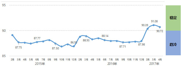 2017年4月中轻景气指数为90.72