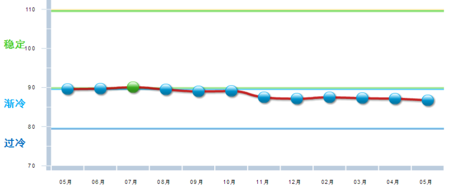 从分项指数环比变化看,主营业务收入、出口、利润、资产四项指数环比上月均有小幅回落,其中:主营业务收入景气指数88.13,位于“渐冷”区间,较上月下降0.34点;出口景气指数为94.28,位于“稳定”区间,较上月下降0.54点;资产景气指数为99.38,位于“渐冷”区间,较上月下降0.65点;利润景气指数78.82,位于“过冷”区间,较上月下降0.86点。
