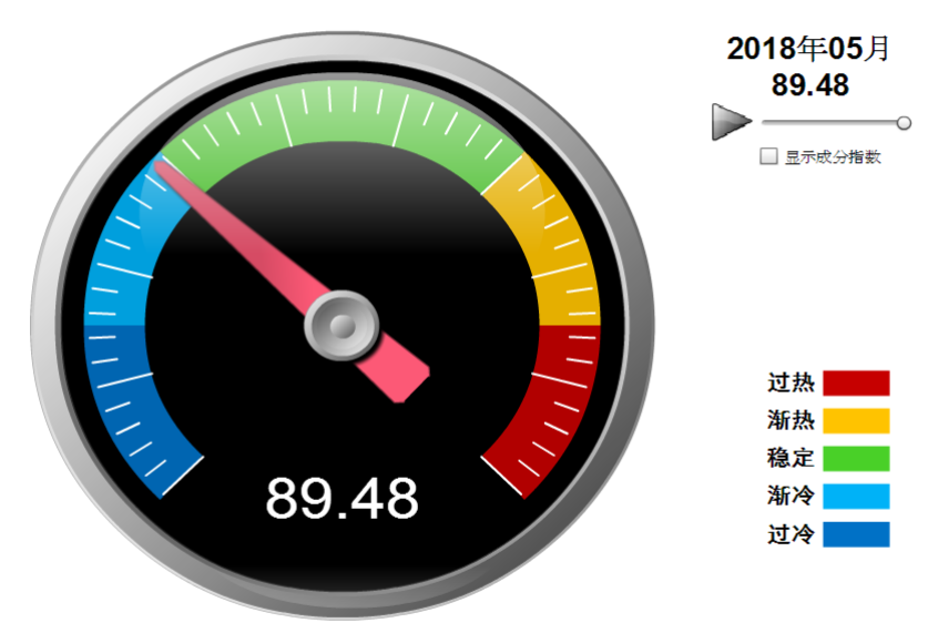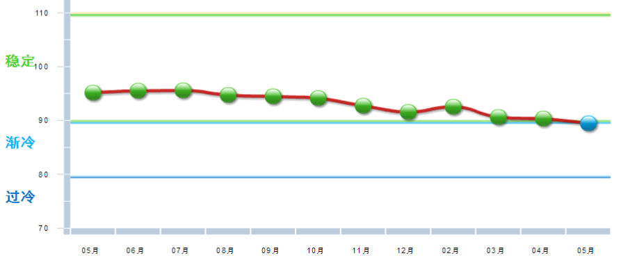 据中国轻工业经济运行及预测预警系统数据显示,2018年5月中国文体用品制造业景气指数为89.48,一年以来首次跌入蓝色“渐冷”区间,较4月下降0.86点。