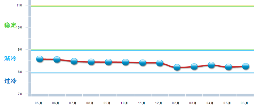 据中国轻工业经济运行及预测预警系统数据显示,2018年6月中国农副食品加工业景气指数为82.42,处在蓝色“渐冷”区间,较4月回升0.29。