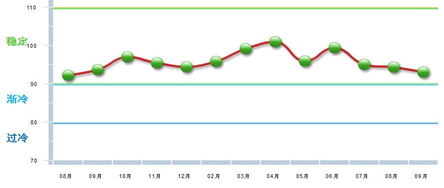 据中国轻工业经济运行及预测预警系统数据显示,2018年9月酿酒行业景气指数为93.01,处在“稳定”区间,较8月下降1.31点。