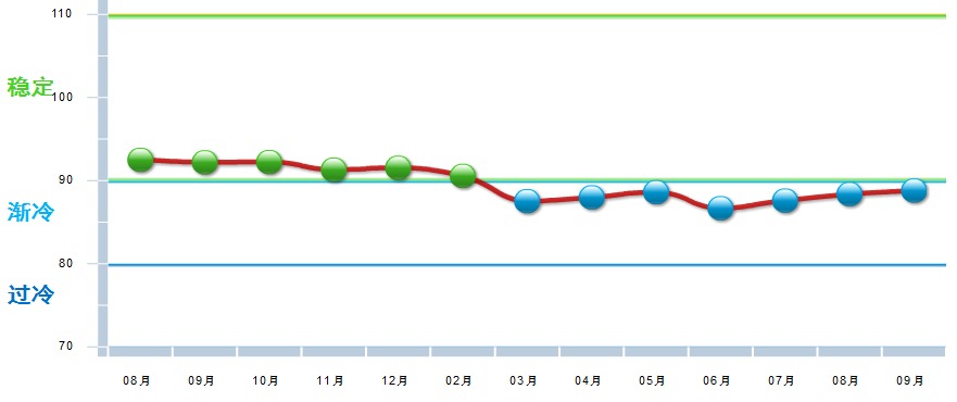 据中国轻工业经济运行及预测预警系统数据显示,2018年9月家具制造业景气指数88.83,处在“渐冷”区间,较8月回升0.43点。