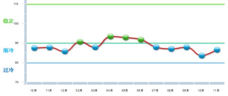 据中国轻工业经济运行及预测预警系统数据显示,2018年11月饮料制造业景气指数86.57,处在“渐冷”区间,较10月回升2.96点。