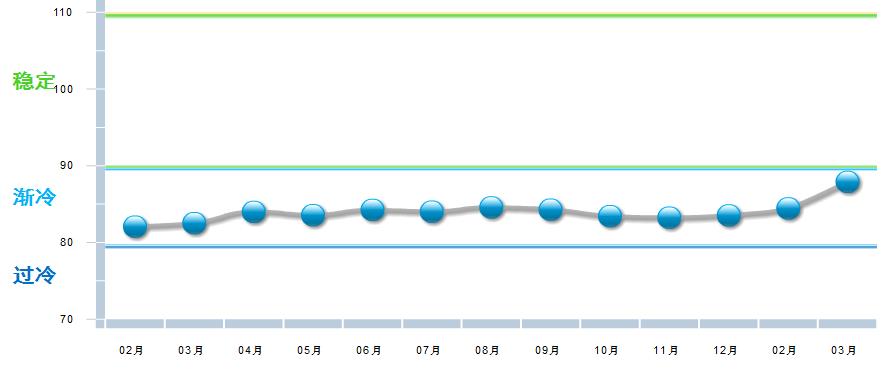 中国轻工业经济运行及预测预警系统数据显示:2019年开年,中轻景气指数继续在蓝色“趋冷”区间波动,由于春节错月因素影响,一季度