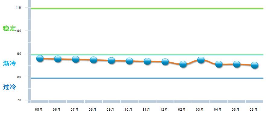 中国轻工业经济运行及预测预警系统数据显示:2019年,中轻景气指数继续在蓝色“趋冷”区间波动,6月中轻景气指数为86.91,较5月下降0.42点,较去年同月下降1.19点。