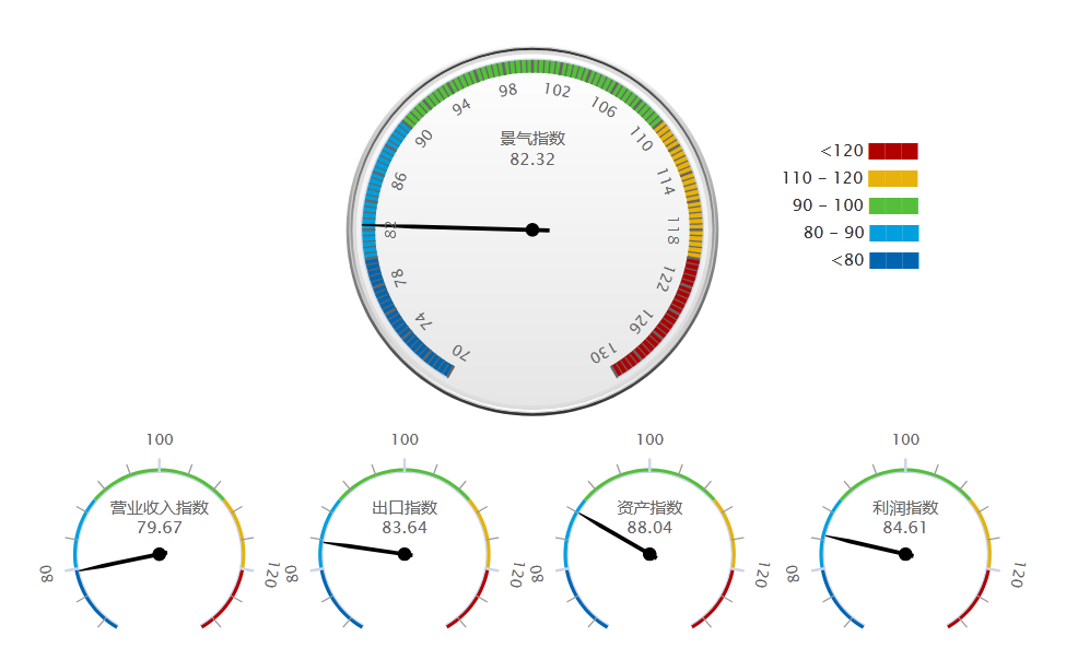 各分项景气指数中,资产景气指数88.04,处于“渐冷”区域,环比微弱回落0.05个点,三季度该指标逐月下滑;出口景气指数83.64,位于“渐冷”区间,环比上涨1.9个点;利润景气指数84.61,延续“渐冷”态势,环比提升1.6个点;主营收入景气指数79.67,环比小幅提升0.71个点,依然在“过冷”区域。利润、主营收入景气指数三季度均保持上行态势。