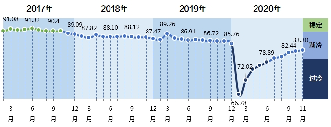 2020年11月中国轻工业景气指数83.30