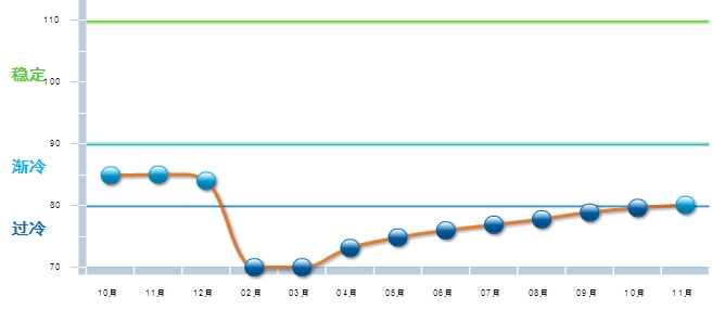 中国轻工业经济运行及预测预警系统数据显示:受新冠疫情影响,轻工业景气指数2020年年初出现大幅下降。但随着轻工企业复工复产复市进度加快, 运行综合景气度3月以来持续回升,第三季度已回升至“渐冷”区间。2020年11月中轻景气指数为83.30,较10月回升0.33点。