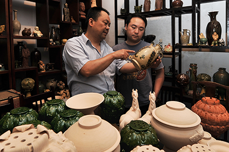 18、2016年,“邛三彩双耳短流壶”“多福香薰”获中国西部陶艺双年展优秀奖,并入选2016年中秋节“手艺成都”精品展。