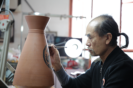 马成林,彝族,1954年3月生。 师从中央美术学院陶瓷系杨大申教授、著名陶艺家向福功等,至今从事陶艺创作40余年,中国陶瓷艺术大师,中国工美行业艺术大师,云南省高级工艺美术师,云南省工艺美术大师,中国工业设计协会理事、副会长,云南省紫陶研究会第一届理事会专家委员会主任。