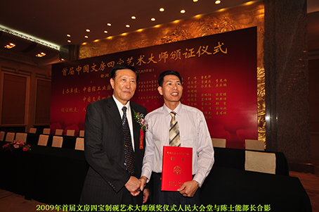 一是探索砚雕创作的主题性,赋予时代气息,描写砚都风貌,歌颂时代精神的有《盛世中华》、《丰年盛世挂满枝》、《金玉满堂》、《福在人间》、《星湖春色》、《赏梅砚》砚等。此类作品力求主题鲜明,表现千年端州之美的文化风貌。