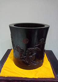 小叶紫檀:琴棋书画笔筒
