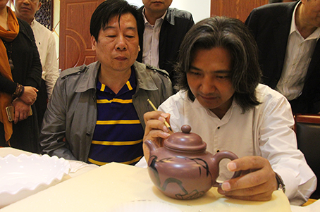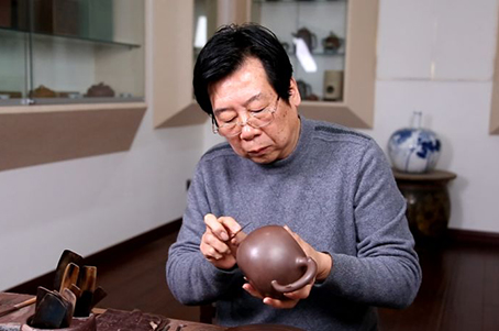 1991年与山水国画大师陆俨少先生合作创制的“杜甫诗意”、“百图壶”、“博浪槌壶”,被香港茶具博物馆、大英博物馆,以及美国州立博物馆收藏;