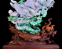 叶福欢大师大胆地将生活灵感运用在翡翠玉雕中,坚持与时俱进,融入现代元素。即便是关公,叶福欢大师也能别出心裁,琢成胸宽体胖、不带大刀带笑颜的《和谐关公》,该关公雕像荣获2010年上海世博会特别金奖。