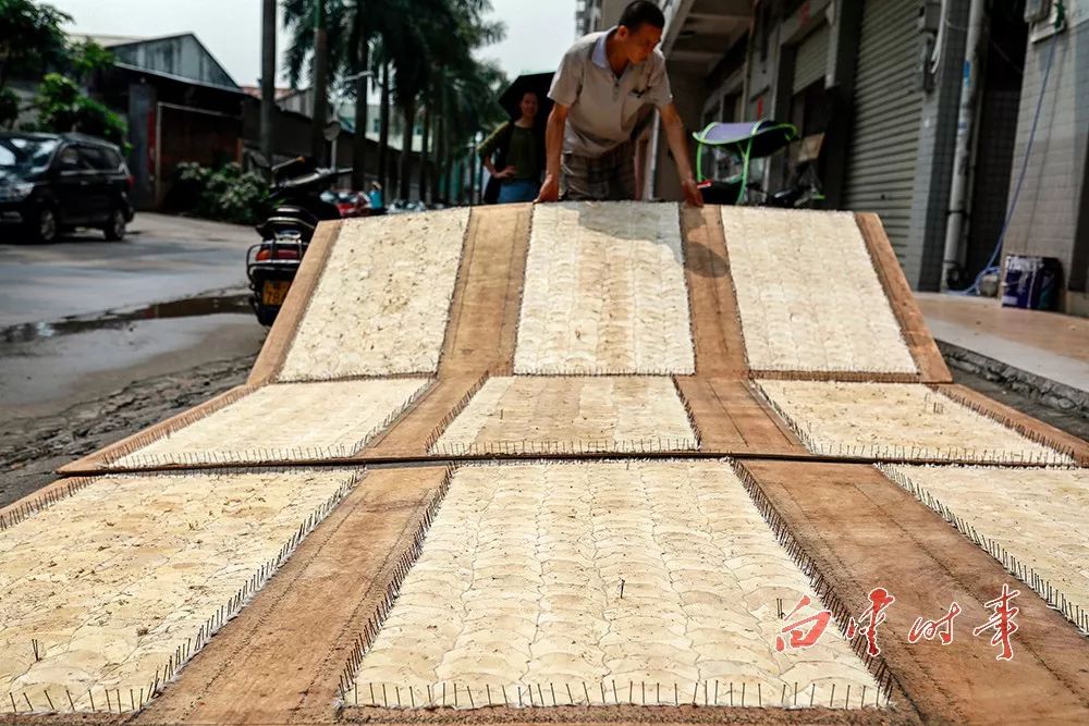 一场大雨突如其来,位于钟落潭镇长腰岭村的裘皮商户一下子忙碌起来,家家户户都赶在雨势猛烈前,抢收“躺”在坪里的裘皮褥子,钉着裘皮褥子的长木板被一张张斜靠在墙边,成为了这条街上独特的风景。