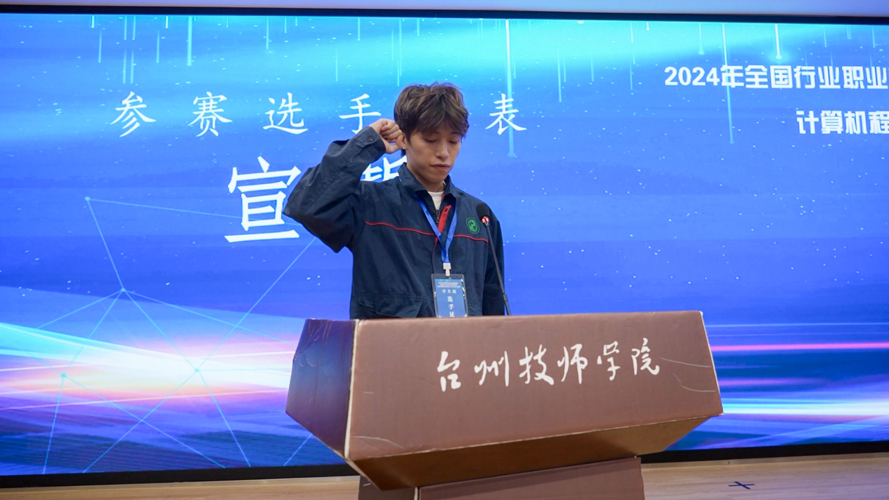 随后,裁判员代表黄翔与参赛选手代表王浩旭庄严宣誓,将严格遵守赛场纪律和竞赛规则,维护比赛纪律,确保竞赛顺利进行。