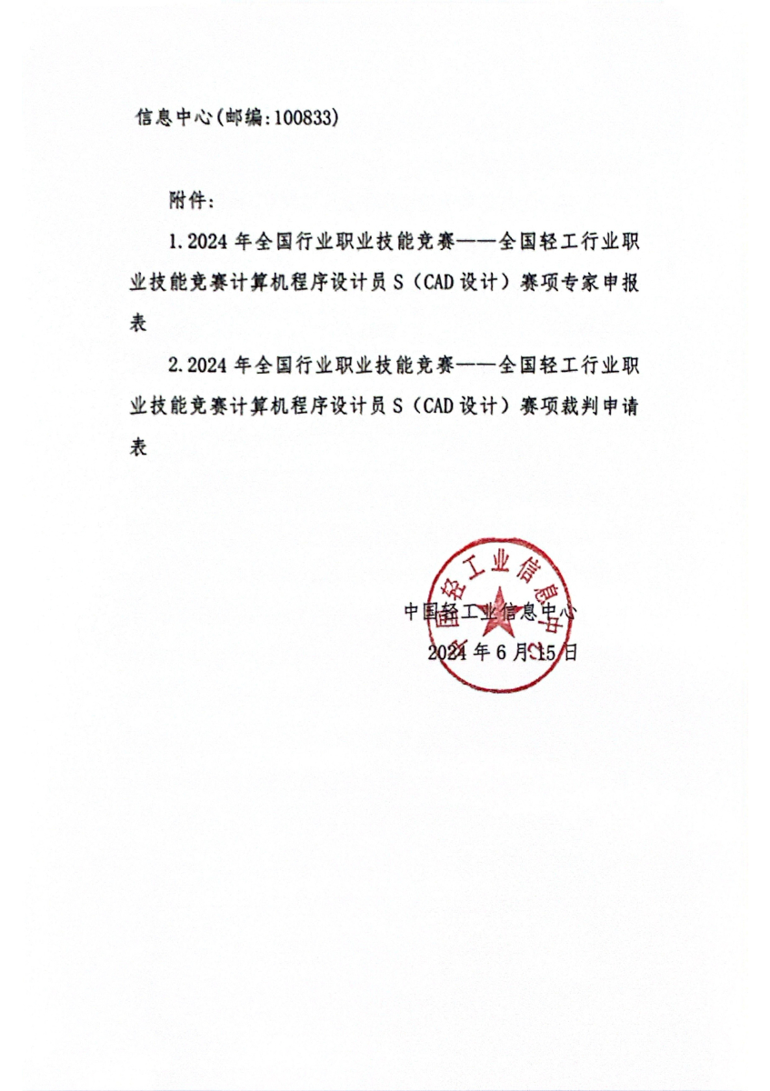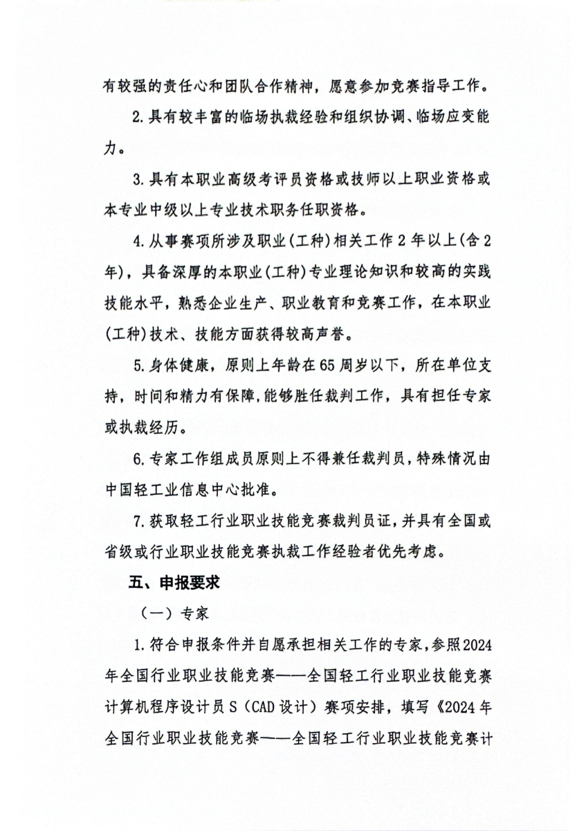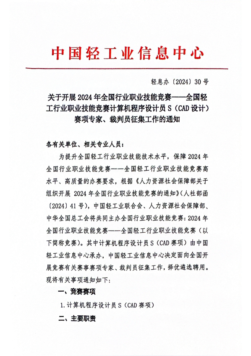 关于开展2024年全国 职业技能竞赛计算机程序设计员s(cad设计)赛项专家、裁判员征集工作的通知