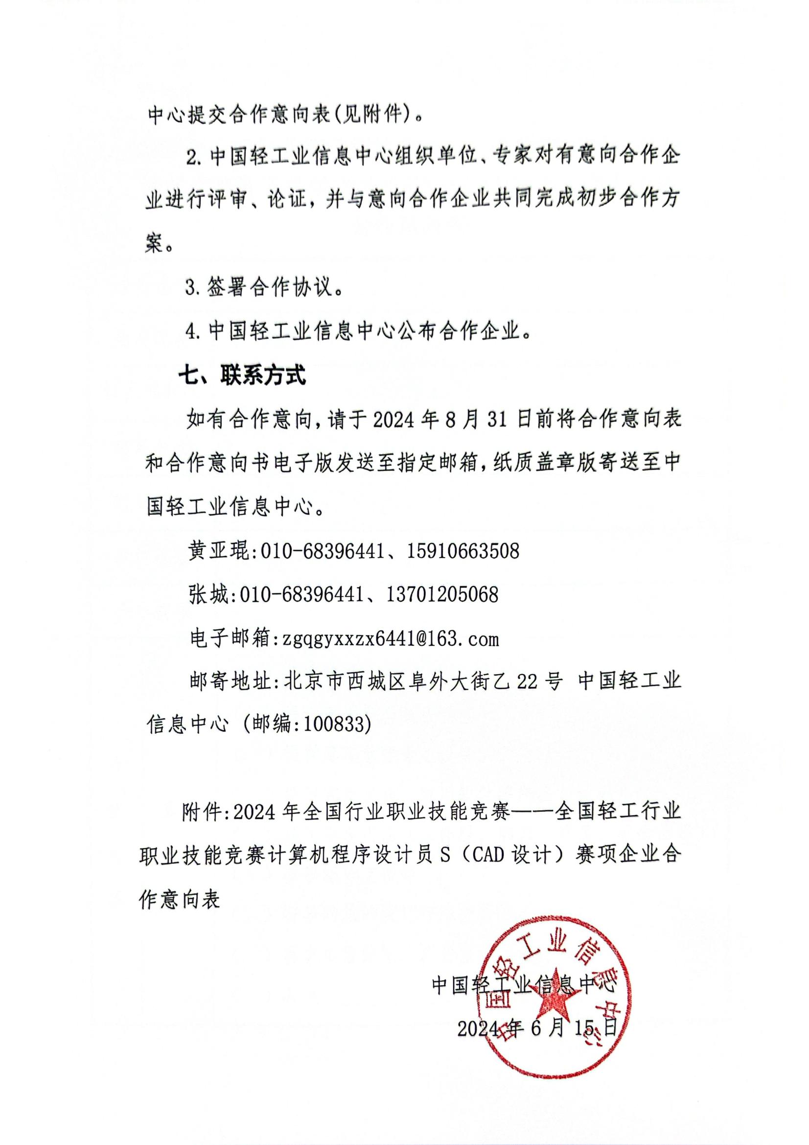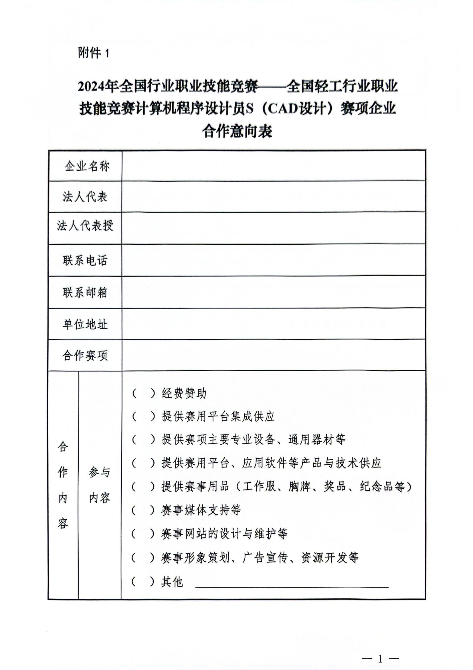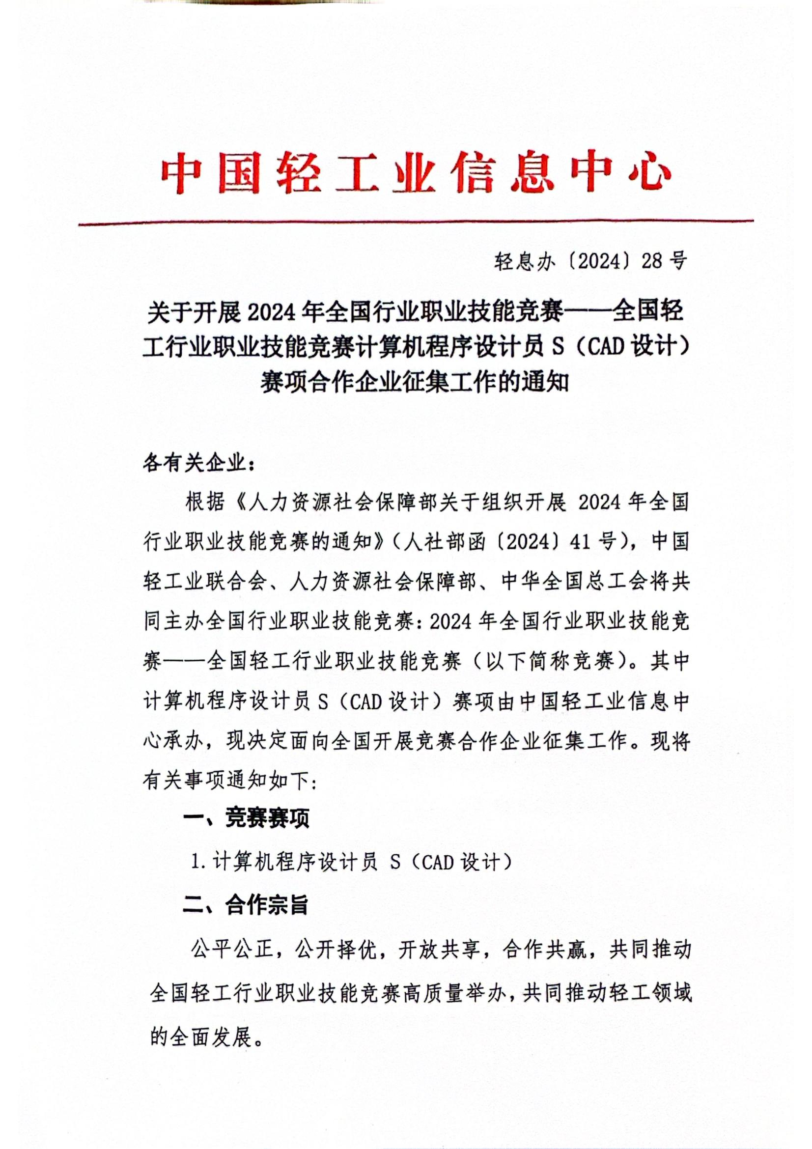 关于开展2024年全国行业职业技能竞赛——全国 职业技能竞赛计算机程序设计员S(CAD设计)赛项合作企业征集工作的通知