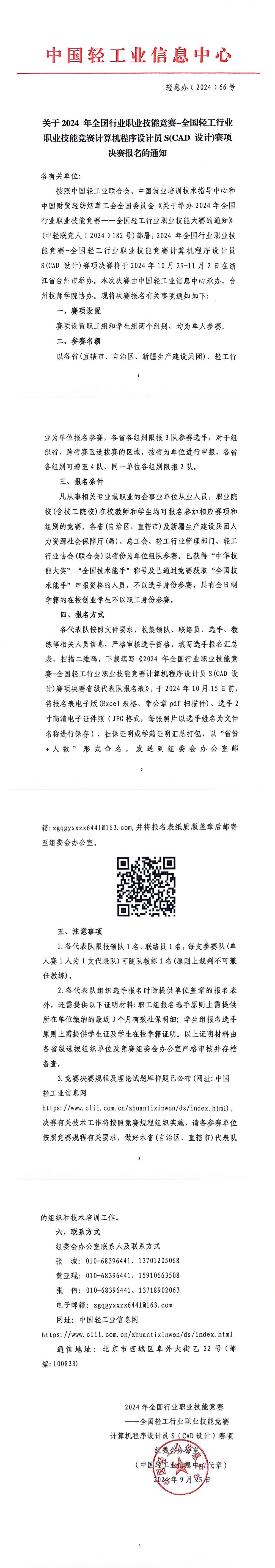 关于2024 年全国行业职业技能竞赛——全国 职业技能竞赛计算机程序设计员S(CAD 设计)赛项决赛报名的通知