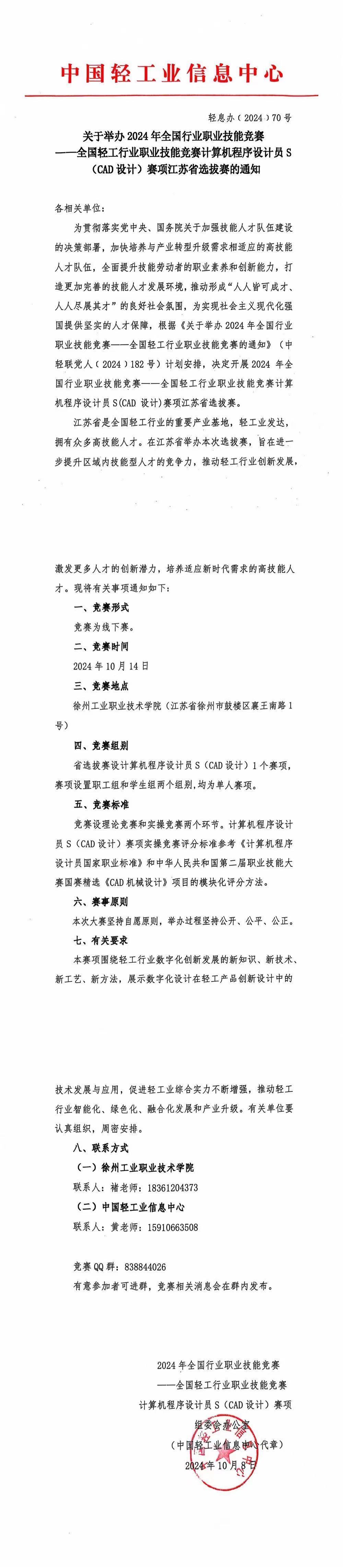 计算机程序设计员S(CAD设计)赛项江苏省选拔赛的通知
