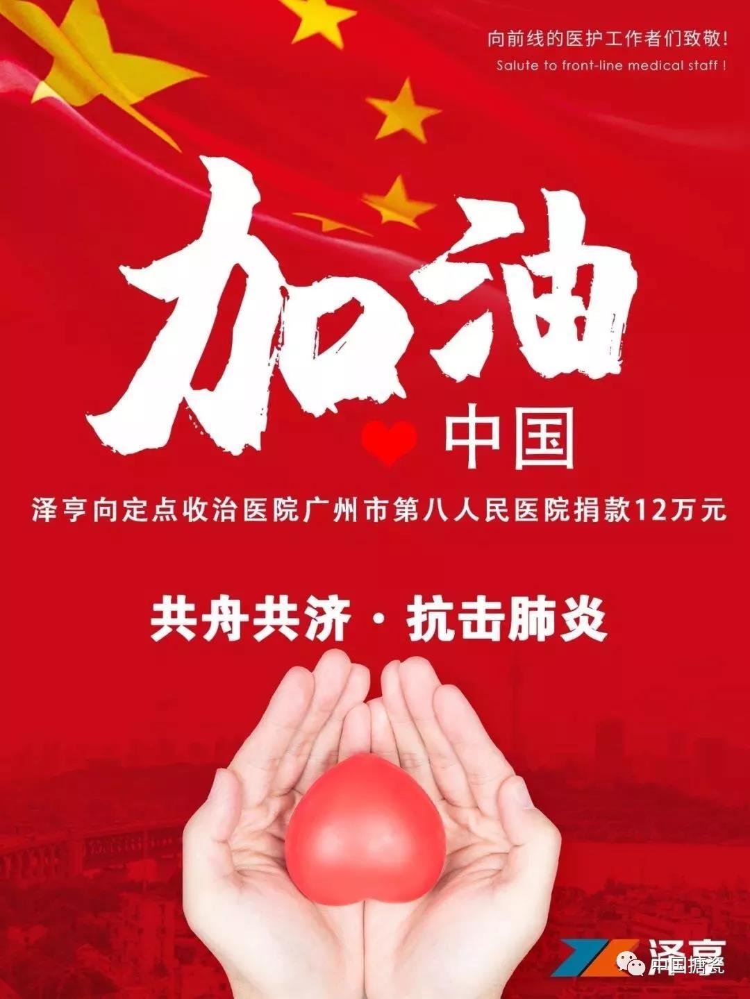 1月29日,中国搪瓷工业协会会员广州泽亨实业有限公司通过广州市红十字会向诊治新型肺炎定点医院广州市第八人民医院定向捐款12万元,主要用于该院开展救治防控工作的相关支出。