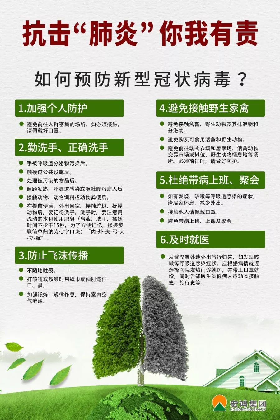此外,宏鸿集团时刻关注疫情防控最新资讯并及时对员工进行宣传,再三强调全体员工须严格做好自我防护工作,抗击肺炎,人人有责。