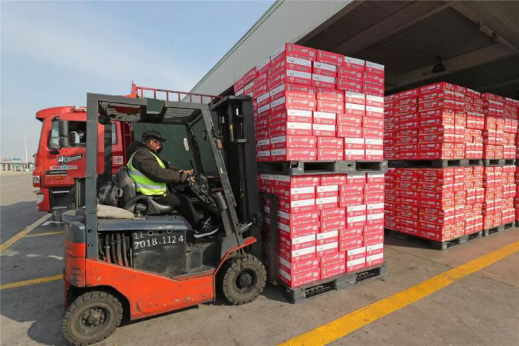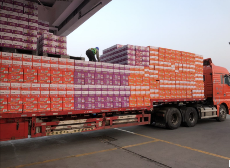 满载产品的卡车从康师傅工厂出发