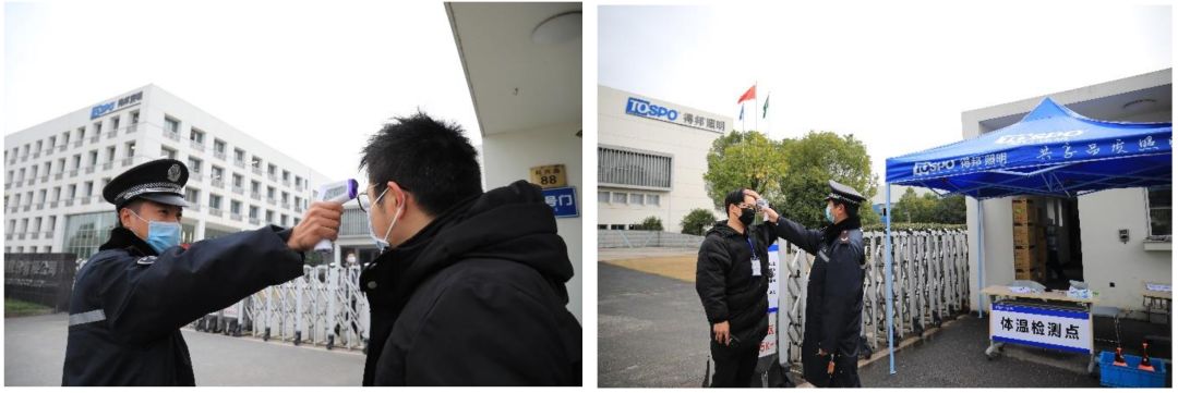 复工后,公司严格参照东阳市“十个到位”要求,落实开展各项防疫管控措施。
