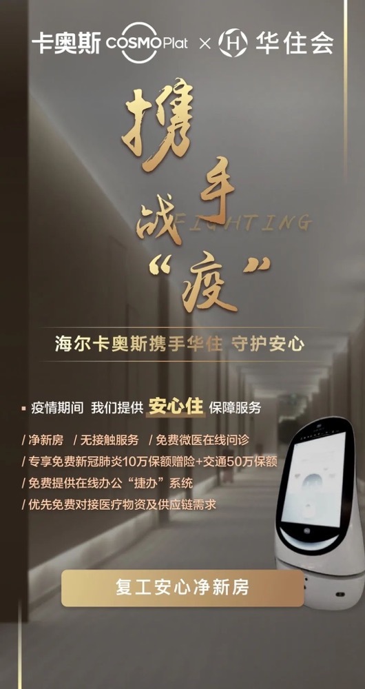 卡奥斯COSMOPlat联合华住酒店集团,推出“复工安心净新房”,为入住员工提供“安心住”保障服务:无接触式酒店服务、免费提供在线办公“捷办”系统、优先免费对接医疗物资及供应链需求,以减少人际接触,避免交叉感染,切实解决企业员工复工隔离住宿问题,保障企业员工返程安心住。