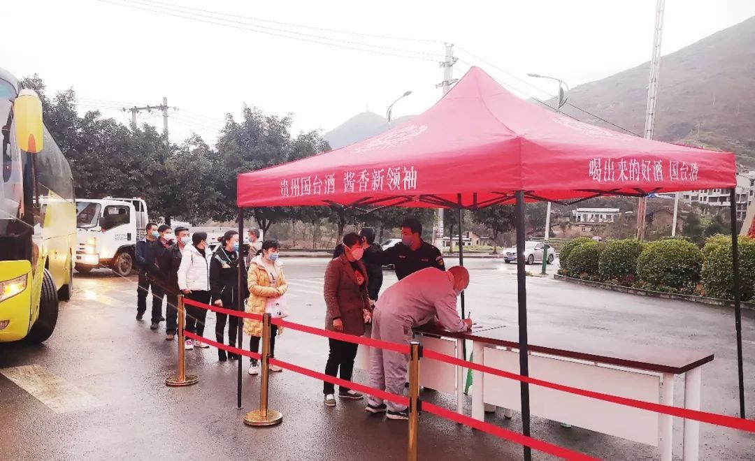 经过自正月初三开始的近15天的周密策划、精心组织和报备审批,2月13日,国台酒业第一批返岗复工人员按时到达座落于茅台镇的厂区,起醅、打糟、上甑……20多天以来的寂静在生产的节奏中结束,也标志着在严防疫情的同时,国台与茅台同时首批复工复产。